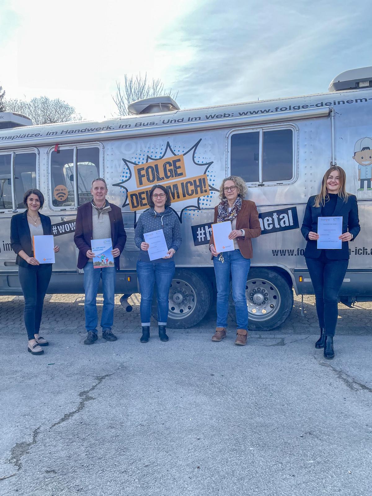 Die Pläne zur künftigen Zusammenarbeit besiegelten beide Seiten nun mit einem Kooperationsvertrag. Mit ihrem engagierten Team aus drei Mitarbeiterinnen legt Marks großen Wert auf die Ansprache auf Augenhöhe in punkto Berufsorientierung und –beratung: „Ganz locker und unkompliziert soll unser Angebot funktionieren“. Mit dem Handwerkerbus kommt das Team an die Schulen und hat viele interessante Konzepte zur Berufsorientierung im Gepäck.