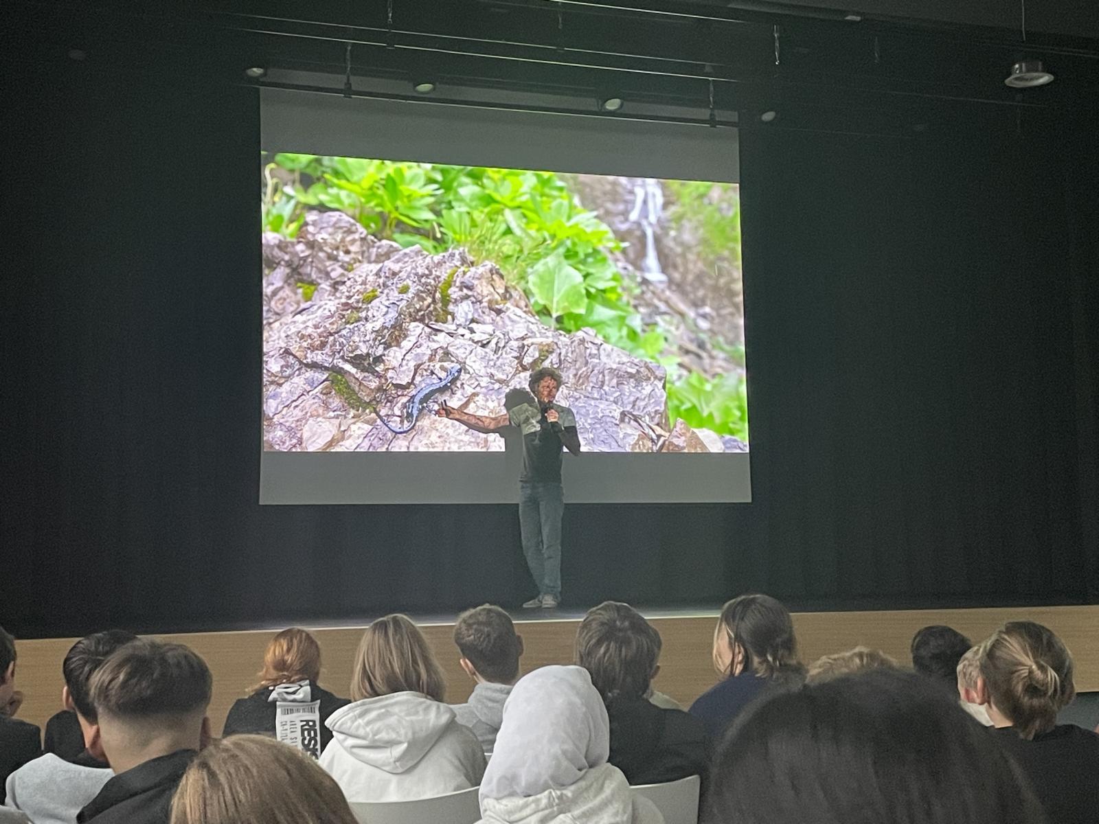 Bereits im Vorfeld konnten unsere Schüler*innen der Klassen 7 & 8 seinem multimedialen Vortrag beiwohnen, eine Show zum Staunen, mitfiebern und entdecken. Die Schüler*innen lauschten gebannt und Sven Meurs lobte die Gruppe zum Ende hin und sagte, dass er bei seinen zahlreichen Schulbesuchen noch nie eine Gruppe hatte, die sich so diszipliniert verhalten habe. Welch ein Kompliment für unsere Schüler*innen!
