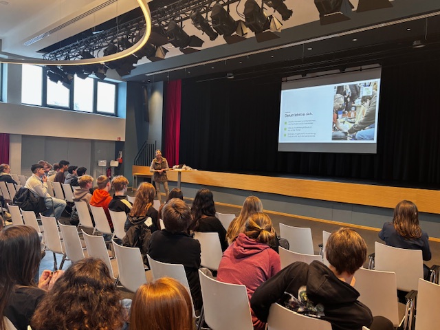 Deren Geschäftsführerin, Melanie Wöllner, besuchte uns am 23. Januar und informierte die Schülerinnen und Schüler des 8. Jahrgangs über verschiedene die verschiedenen Aussteller und Firmen auf der Messe.