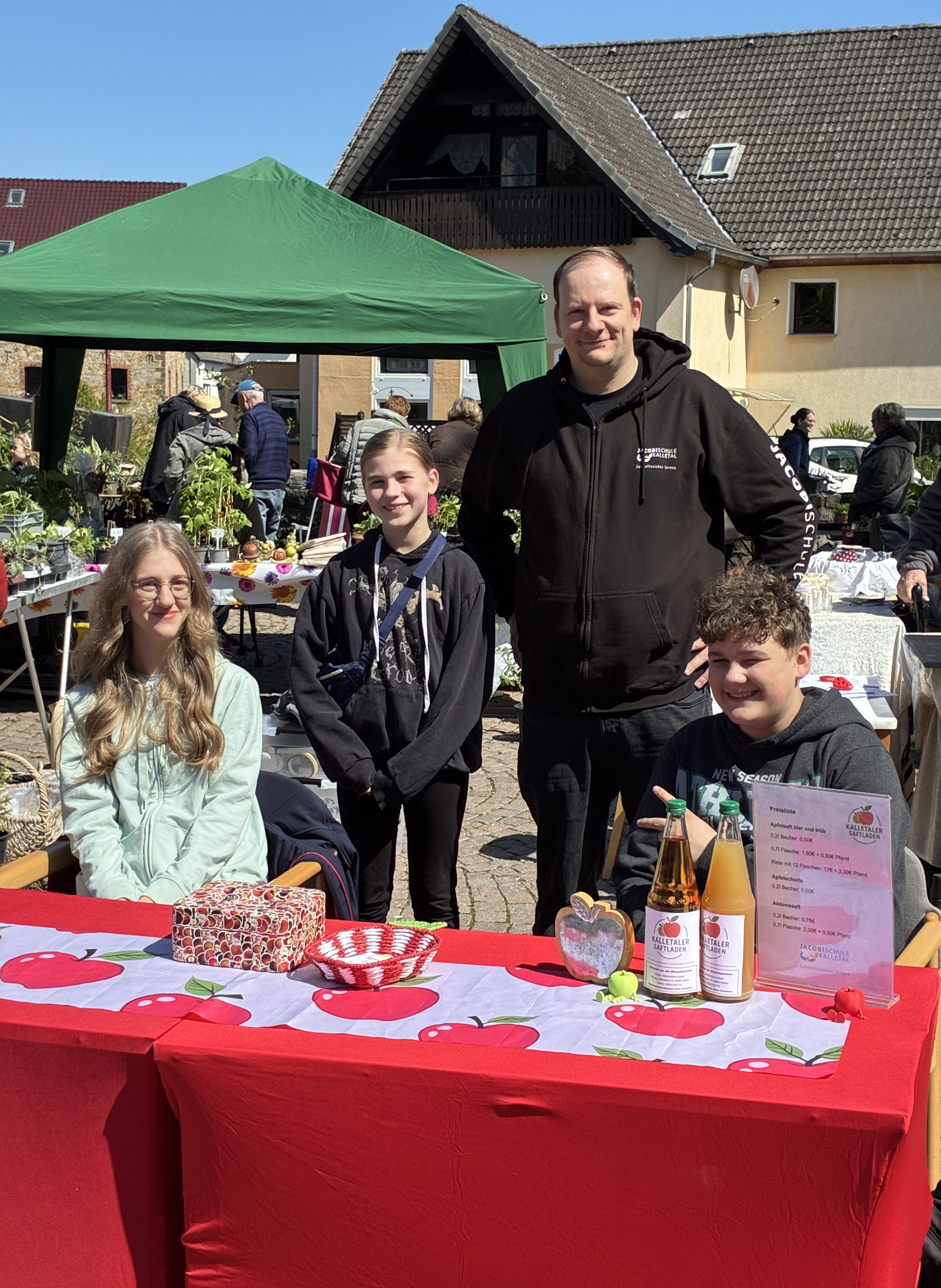 Bei schönem Wetter war unsere Schülerfirma Saftladen um Herrn Ruppert auf dem Gartenflohmarkt unterwegs und verkauften dort Apfelsaft. Es war viel los und alle Beteiligten konnten viele interessante Gespräche führen.