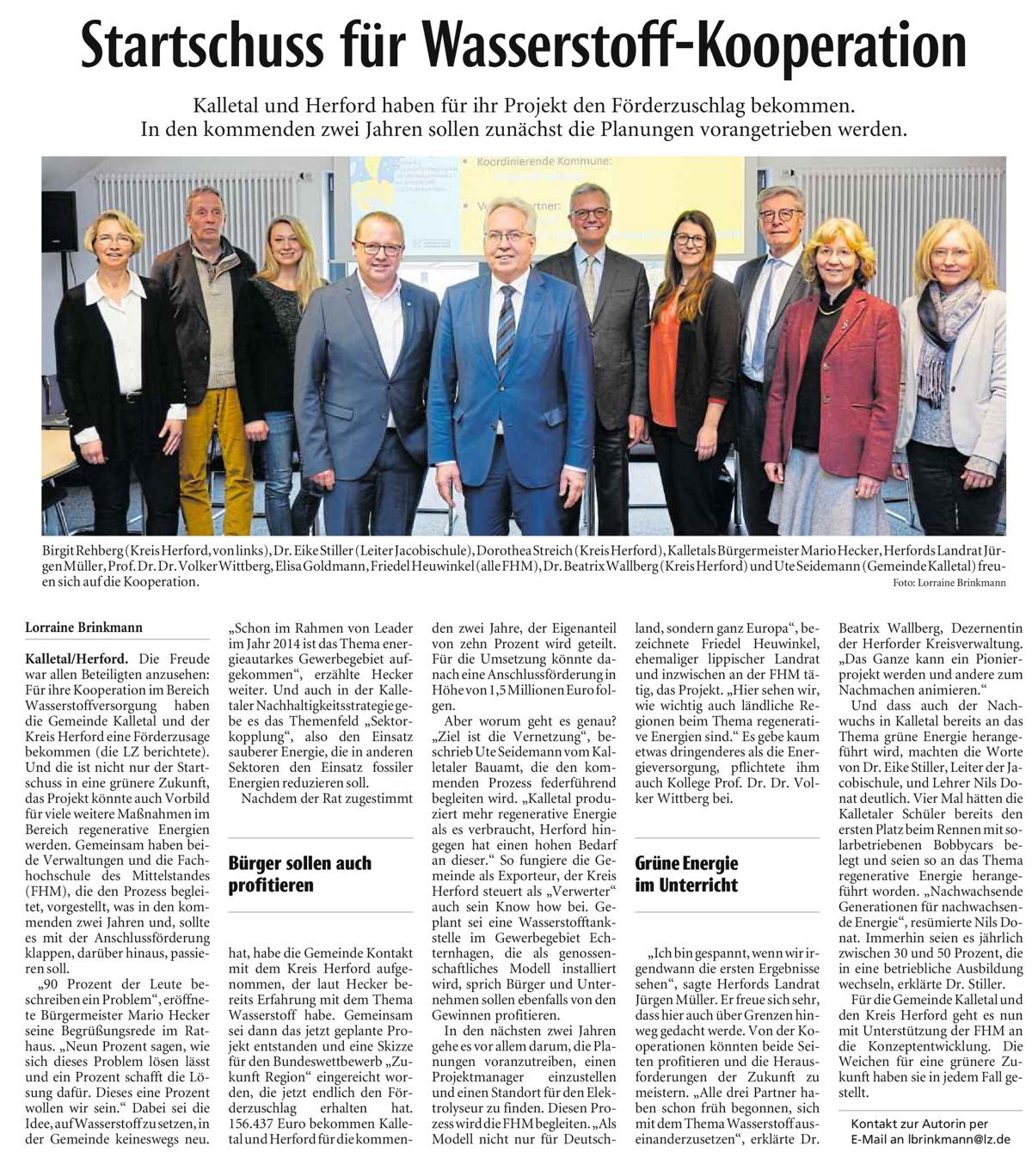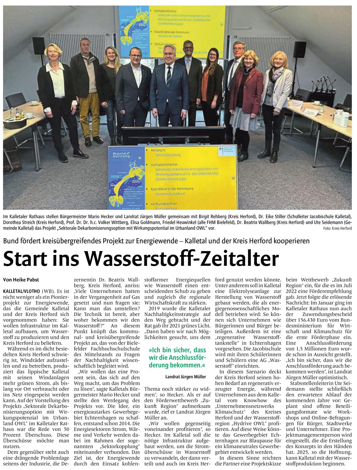 Ein großer Schritt Richtung Wasserstoff und Energiewende- Überschüssige grüne Energie aus Kalletal soll in Zukunft in Herford landen. Ein gemeinsames Projekt der Kommunen und der Fachhochschule des Mittelstands arbeitet daran, diesen Strom in Form von Wasserstoff zu speichern und ihn dann transportieren zu können.