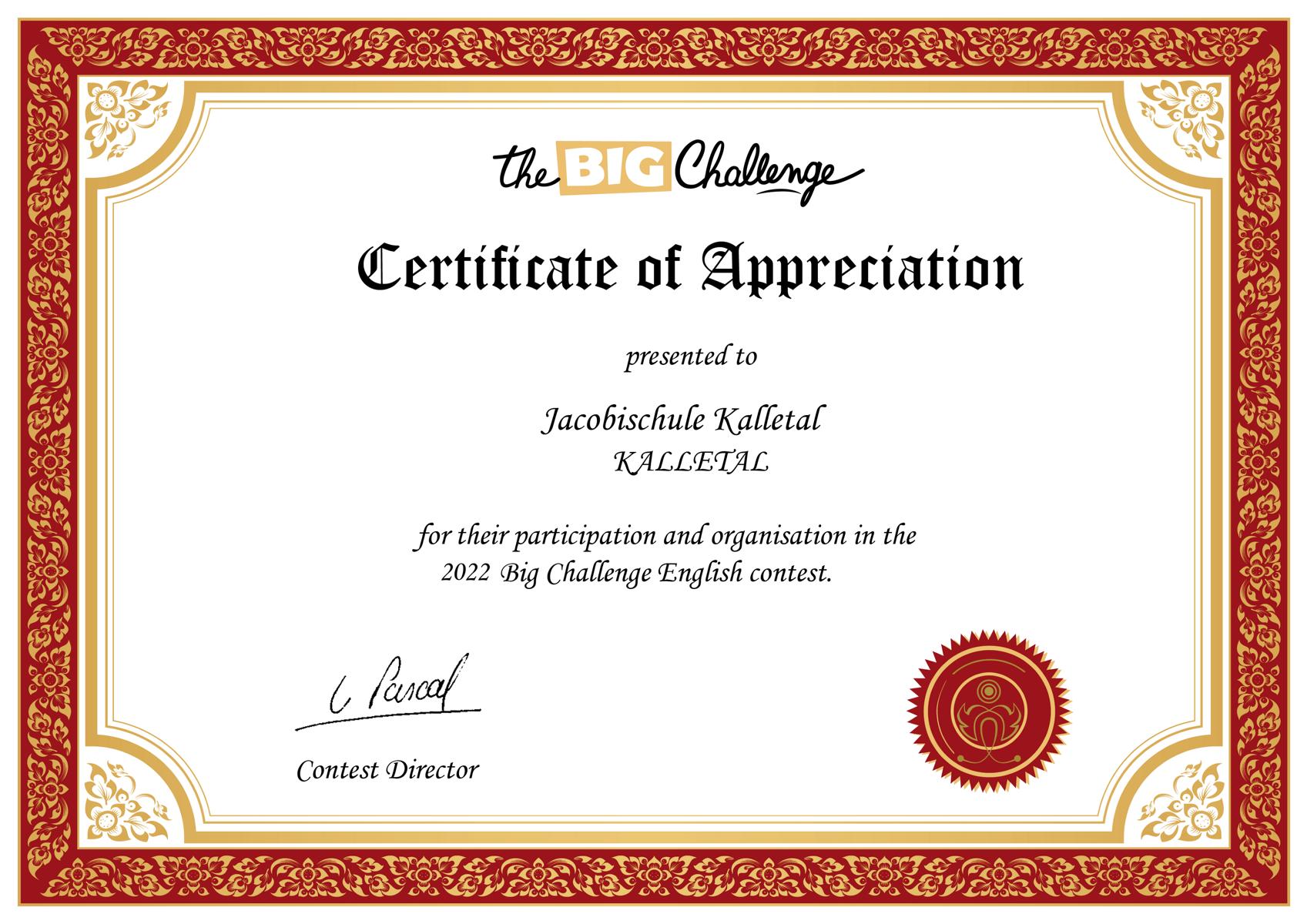 Englischwettbewerb “The Big Challenge“ – Preisverleihung 2022