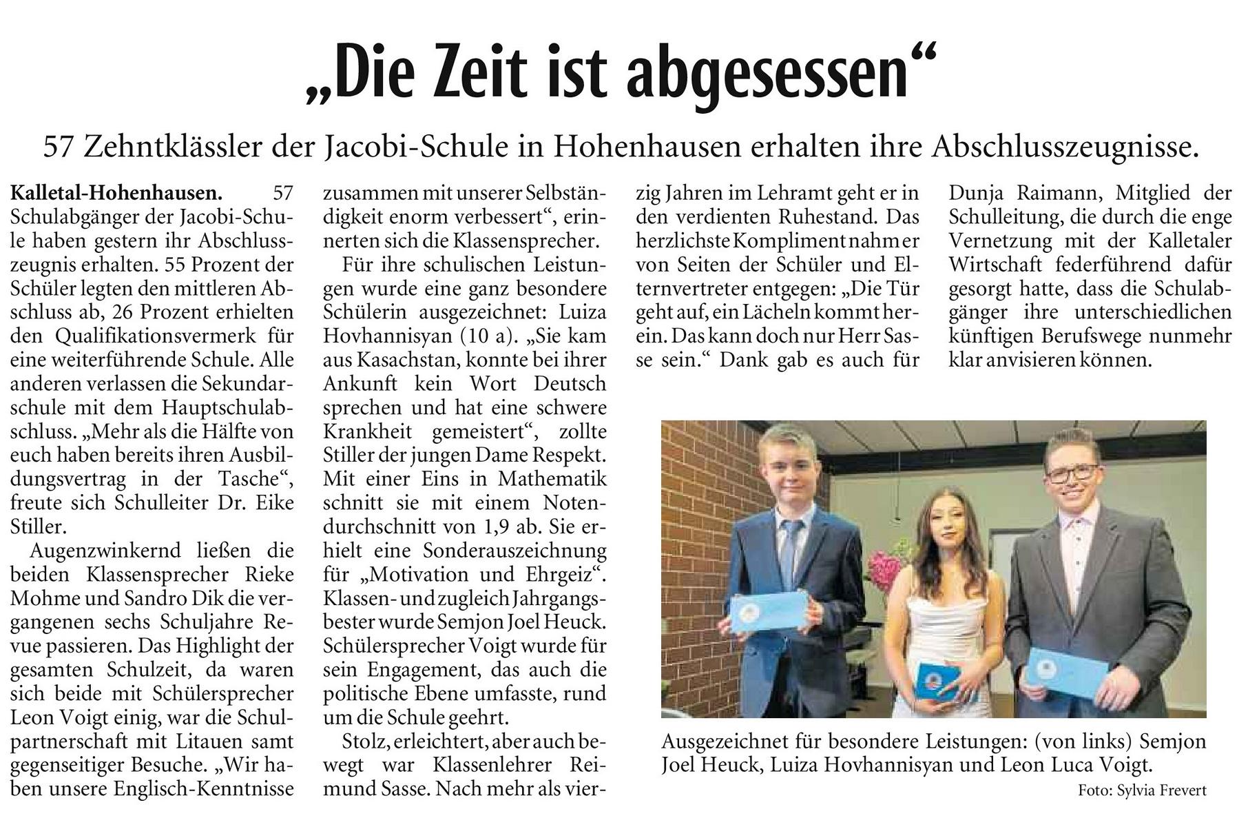 Knapp die Hälfte der Schüler*innen beginnt nun eine duale Ausbildung bei vielen lokalen und regionalen Ausbildungsbetrieben und selbstverständlich auch unseren Kooperationspartnern. Da sieht man, dass die Vernetzung der Jacobischule mit Wirtschaft Früchte trägt. Mehr als ein Viertel der Schüler*innen konnte die Qualifiktaion für die gymnasiale Oberstufe erreichen.