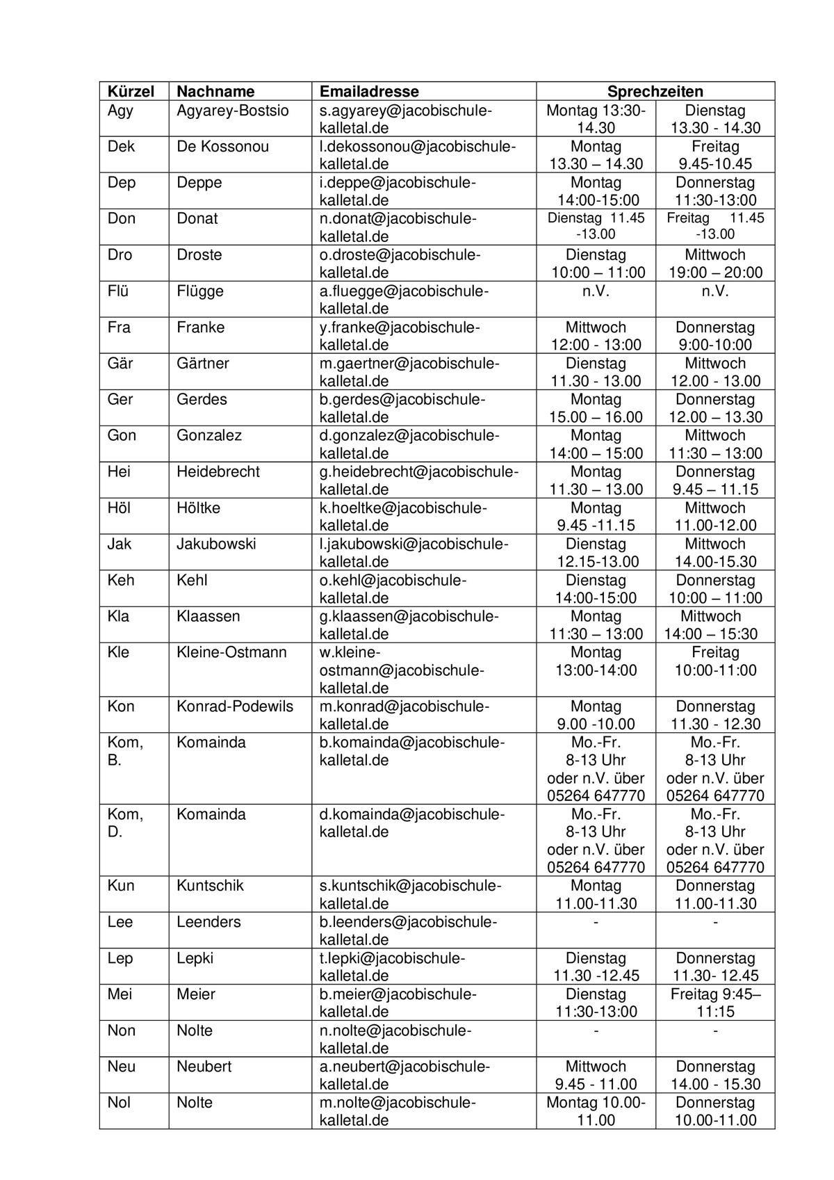 wir hatten bereits informiert, dass die Lehrkräfte auch außerhalb ihrer Unterrichtsstunden noch Sprechzeiten anbieten. Während dieser Zeiten könnt ihr/ können Sie entweder per Mail oder über MNSpro Cloud bzw. Teams Kontakt aufnehmen.