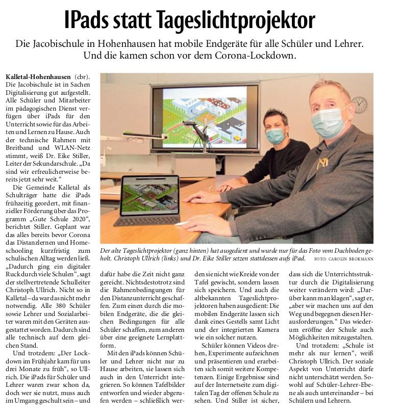 Umso erfreulicher ist, dass die Gemeinde Kalletal sich frühzeitig auf den Weg gemacht hat und diese Grundlagen bereits zukunftsorientiert ausgebaut hatte. Somit sind wir in der glücklichen Situation, dass wir bereits zu den wenigen Schulen gehören, denen eine funktionierende digitale Infrastruktur und die dazugehörigen Geräte zur Verfügung stehen.