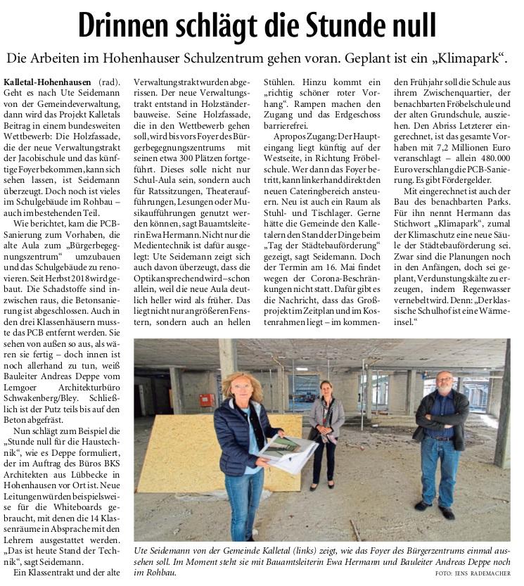 Der Umbau unseres Hauptgebäudes lief und läuft weiter und liegt erfreulicherweise auch im Zeitplan. Ebenso der Umbau der Hohenhauser Straße.