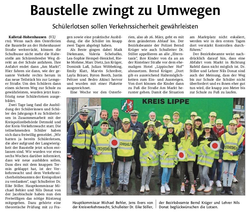 Trotz des Ruhens des Unterrichts schreitet der Umbau der Hohenhauser Straße voran. Die Busse können das Schulzentrum nicht mehr anfahren, auch Erziehungsberechtigte sind gehalten, wenn der Unterricht wieder startet, Haltezonen anzufahren. Die Schule hat aus Sicherheitsgründen reagiert und in Kooperation zwischen Herrn Donat und der Kreispolizei zahlreiche Schülerlotsen ausgebildet, um die Sicherheit auf dem Schulweg, auch für Grundschülerinnen und Grundschüler, zu gewährleisten.