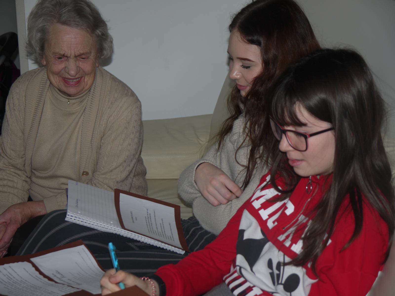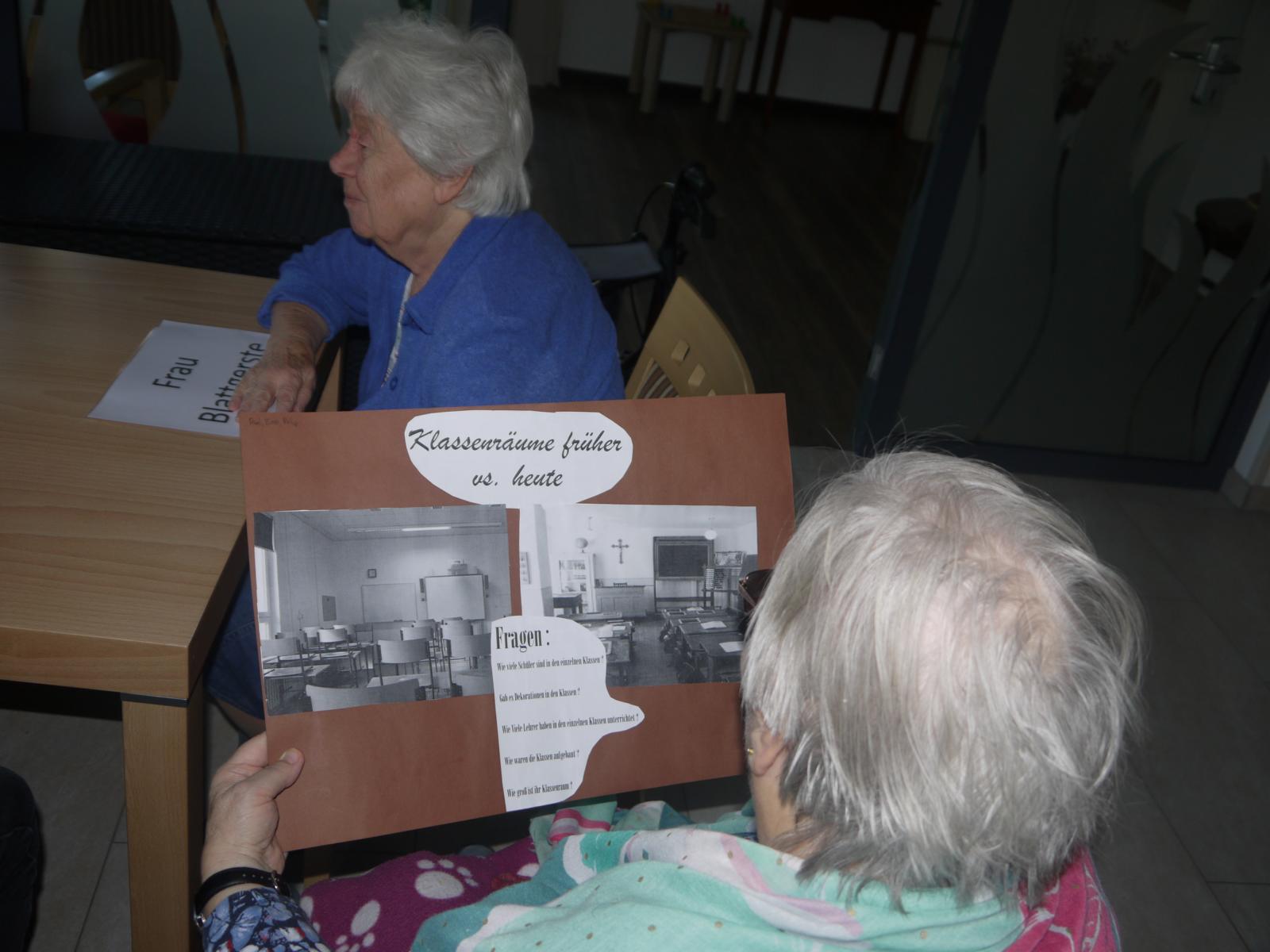 Regelmäßig besuchen die Schülerinnen und Schüler das Altenheim und führen mit zwölf Mitbewohnerinnen ein Speed-Dating durch. Dort stellen die Schüler Fragen zum Thema Schule früher vs. heute. Dafür planten die Jugendlichen im Voraus die einzelnen Unterthemen in der Schule. Meistens wurde dies in Partnerarbeit durchgeführt. Die Bewohnerinnen des Altenheims zeigen sehr viel Interesse an diesem Projekt und die Schüler sind auch mit vollem Engagement dabei. Beide Parteien freuen sich sehr an solch ein Projekt teilnehmen zu dürfen. Passend zu der Weihnachtszeit fertigten die Schüler ein kleines Präsentpäckchen für jede Bewohnerin, die teilgenommen hatte, nach dem tollen Schulgottesdienst trafen sich die einzelnen Schüler des Ergänzungskurses vor dem Eingang des Altersheims. Zur Freude von Frau Raimann waren noch zwei nette Schülerinnen aus der 8. Klassen und eine aus der 10. Klasse dabei, die sowohl bei der Anfertigung der Tüten als auch beim Verteilen mitgeholfen haben. Die Bewohnerinnen haben sich sehr über den Besuch gefreut und freuen sich schon sehr auf das nächste Treffen. In den Stunden, in denen die Schüler nicht im Altersheim sind, bereiten sie sich für die nächsten Besuche vor, indem sie am PC ihre einzelnen Themen in einer Power Point Präsentation vorbereiten und auch vorstellen oder einfach tabellarisch aufführen. Die Schüler sind immer motiviert und konzentriert bei der Arbeit. Sie freuen sich immer auf den nächsten Besuch und sind äußerst interessiert an den Themen und Gesprächen mit den Bewohnern.