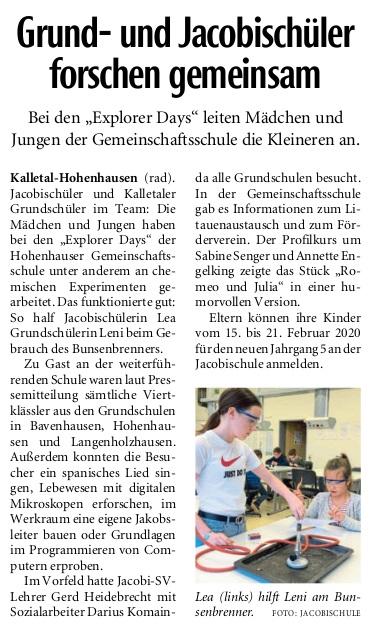 Lesen Sie auch hier die Zeitungsartikel aus der Lippischen Landeszeitung vom 22.11.2019 (wenngleich das Theaterstück am Tag der offenen Schule stattfand, nicht im Rahmen der Explorer Days) und aus dem Westfalenblatt vom 27. und 28.11.19.