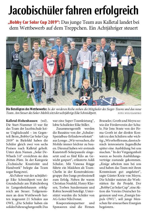 Lesen Sie auch die Zeitunsartikel aus der Lippischen Landeszeitung vom 12. Oktober 2019 und dem Westfalenblatt vom 15. Oktober 2019.