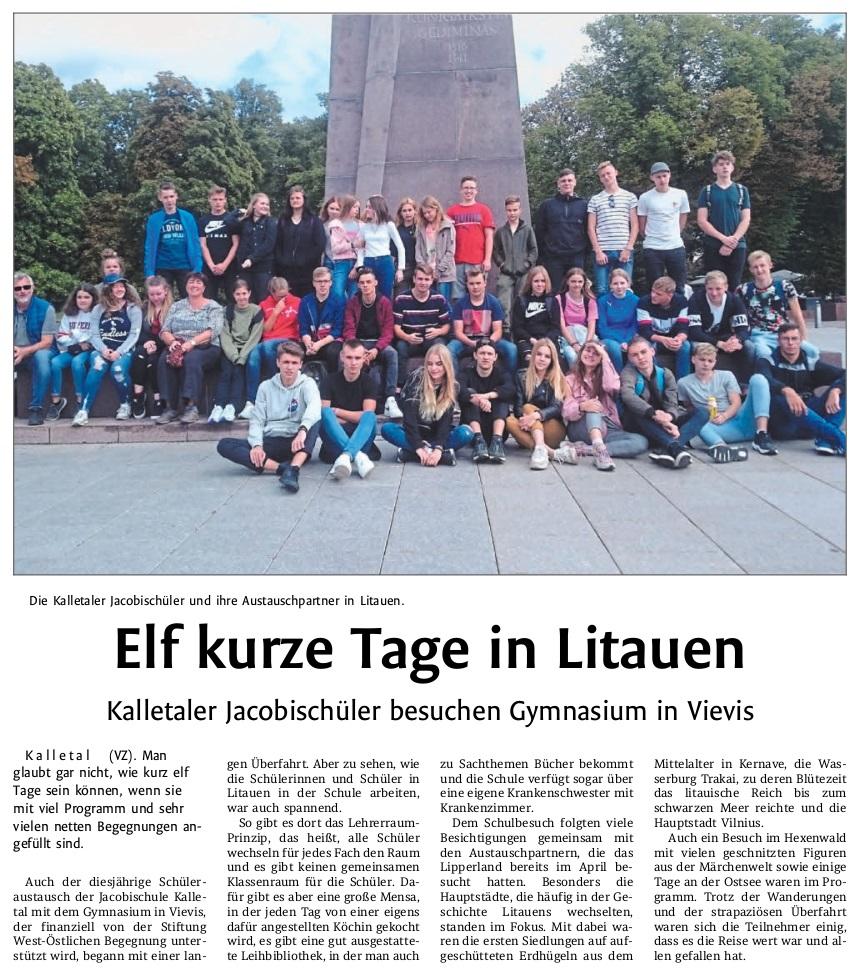 Nachdem Frau Konrad bereits vor einigen Tagen ausführlich über die Litauenfahrt berichtet hat, schließt sich nun die aktuelle Tagespresse an und berichtet von unserem Schulaustausch.