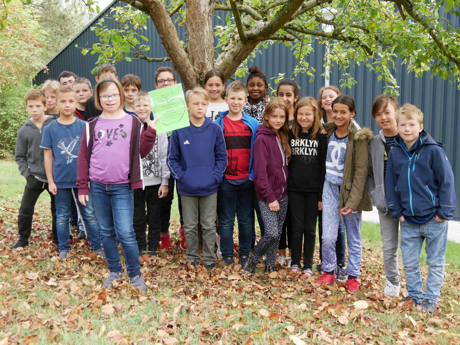 Frau Stamm und Herr Dr. Stiller begleiteten die Schülerinnen und Schüler also zu unserer Streuobstwiese und erklärten den Kindern ihren Sinn und Zweck. Sobald das Wetter es zulässt, werden die Klassen ihren eigenen Baum pflanzen können und dessen Erträge dürfen sie dann auch in der Klasse verzehren.