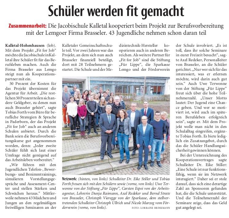 Brasseler neuer Kooperationspartner - Schüler werden fit for job