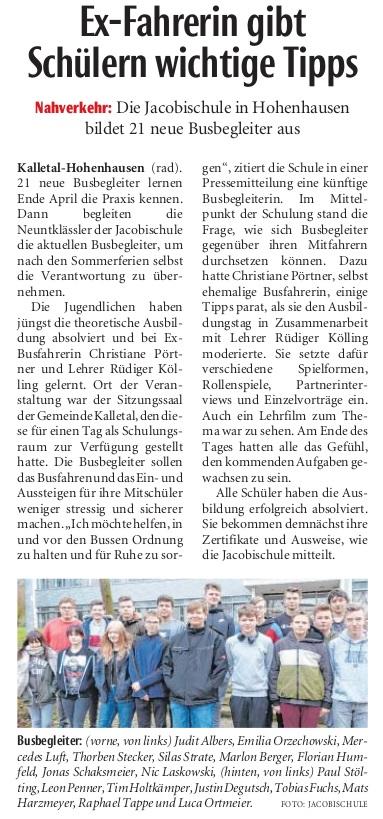 Die Jacobischule Kalletal hat nun zum wiederholten Male die Hauptakteure mit ins Boot geholt und einige Schülerinnen und Schüler zu Busbegleiter ausgebildet.