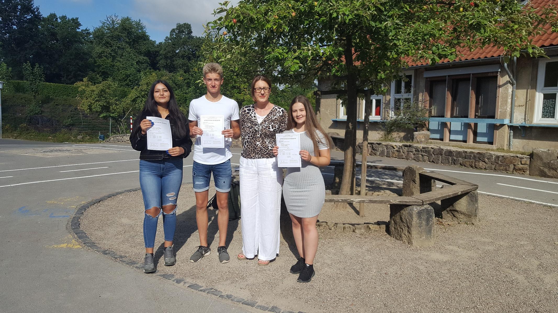 Dima Namo, Mika Fuhrmann, Französischlehrerin Birgit Gerdes und Melanie Deis (v.l.) freuen sich über die Ergebnisse.