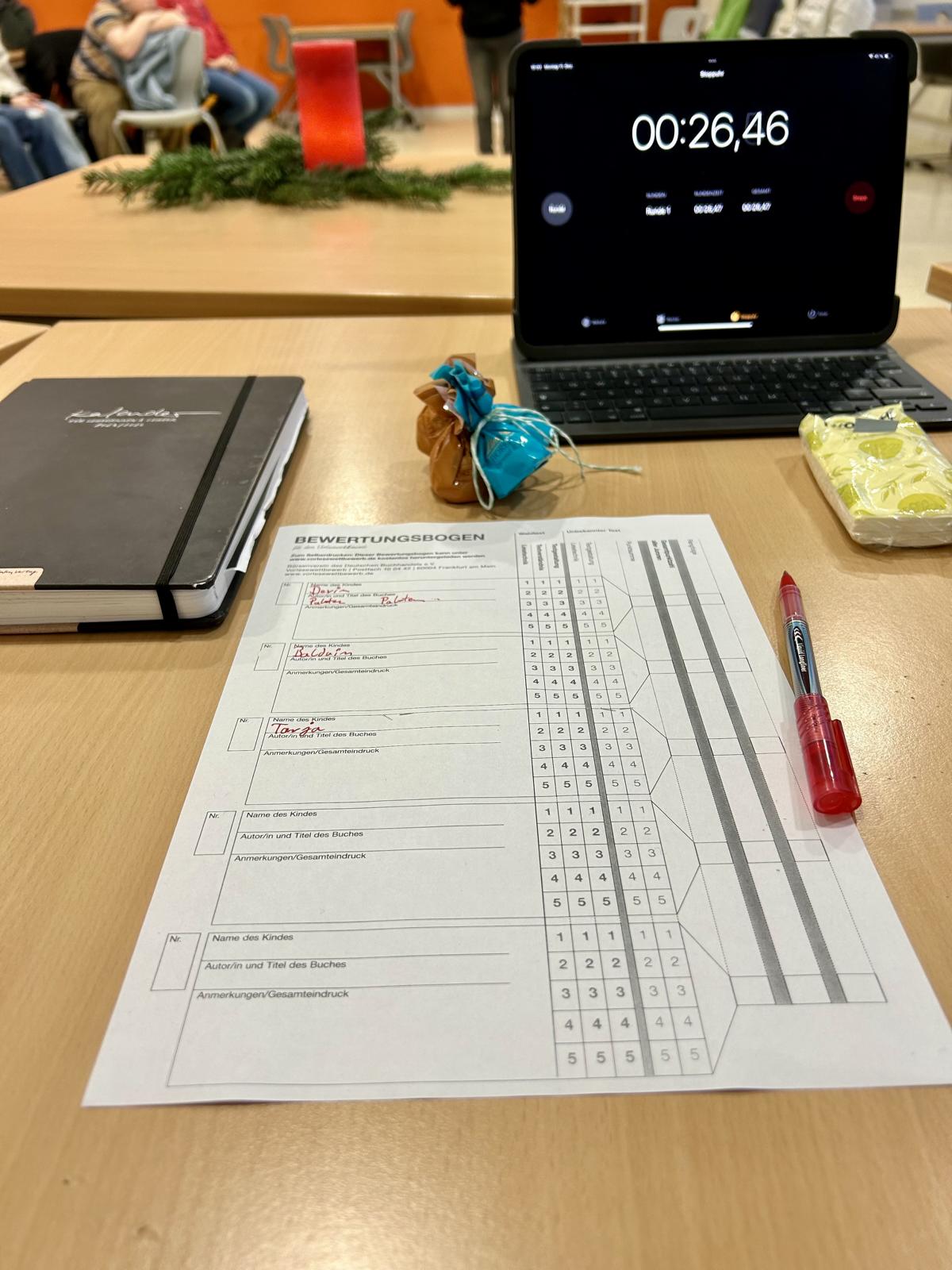Die Jury, bestehend aus Claudia Raimann (Schulsekretärin), Gerald Klaassen (Vorstand der Schulbibliothek), Henning Lorke (Abteilungsleitung I) und Marion Konrad (Vorsitz Fachschaft Deutsch), tat sich nicht leicht mit ihrer Entscheidung, kam aber einstimmig zu dem Ergebnis, dass Tarja Jenssen die diesjährige Gewinnerin im Vorlesewettbewerb der Jacobischule ist.