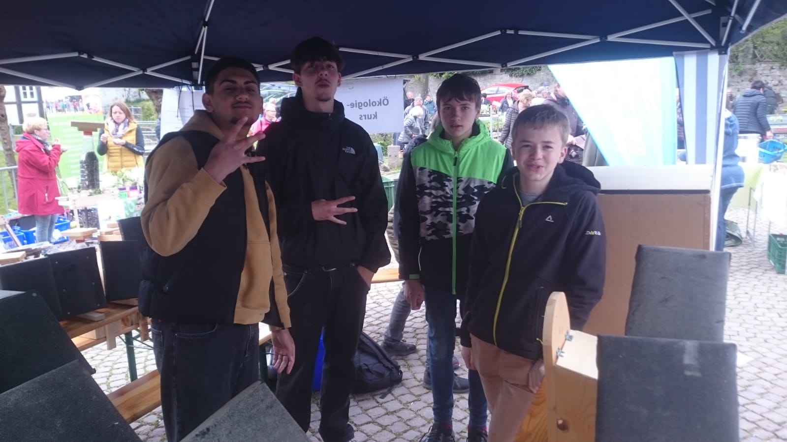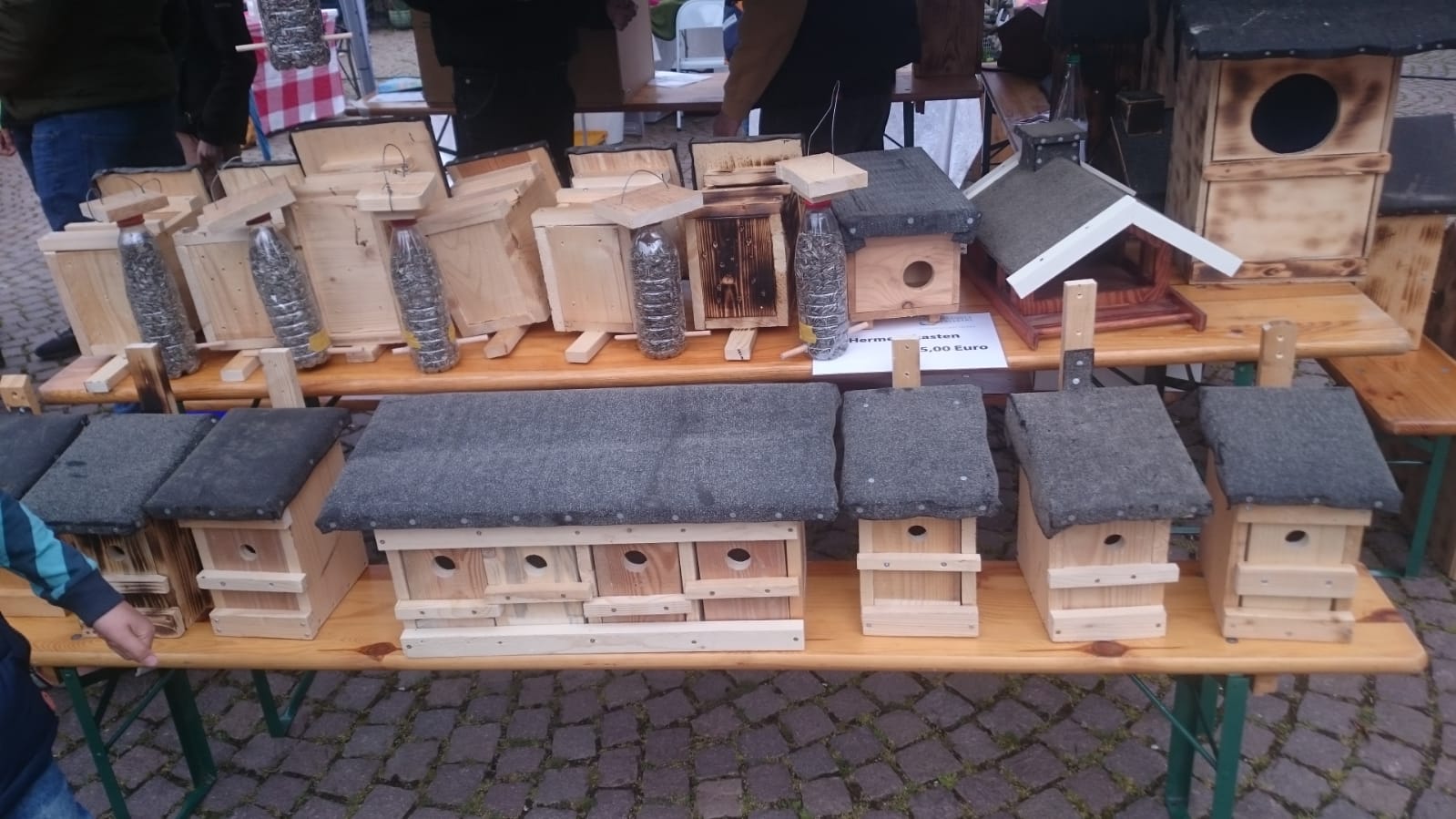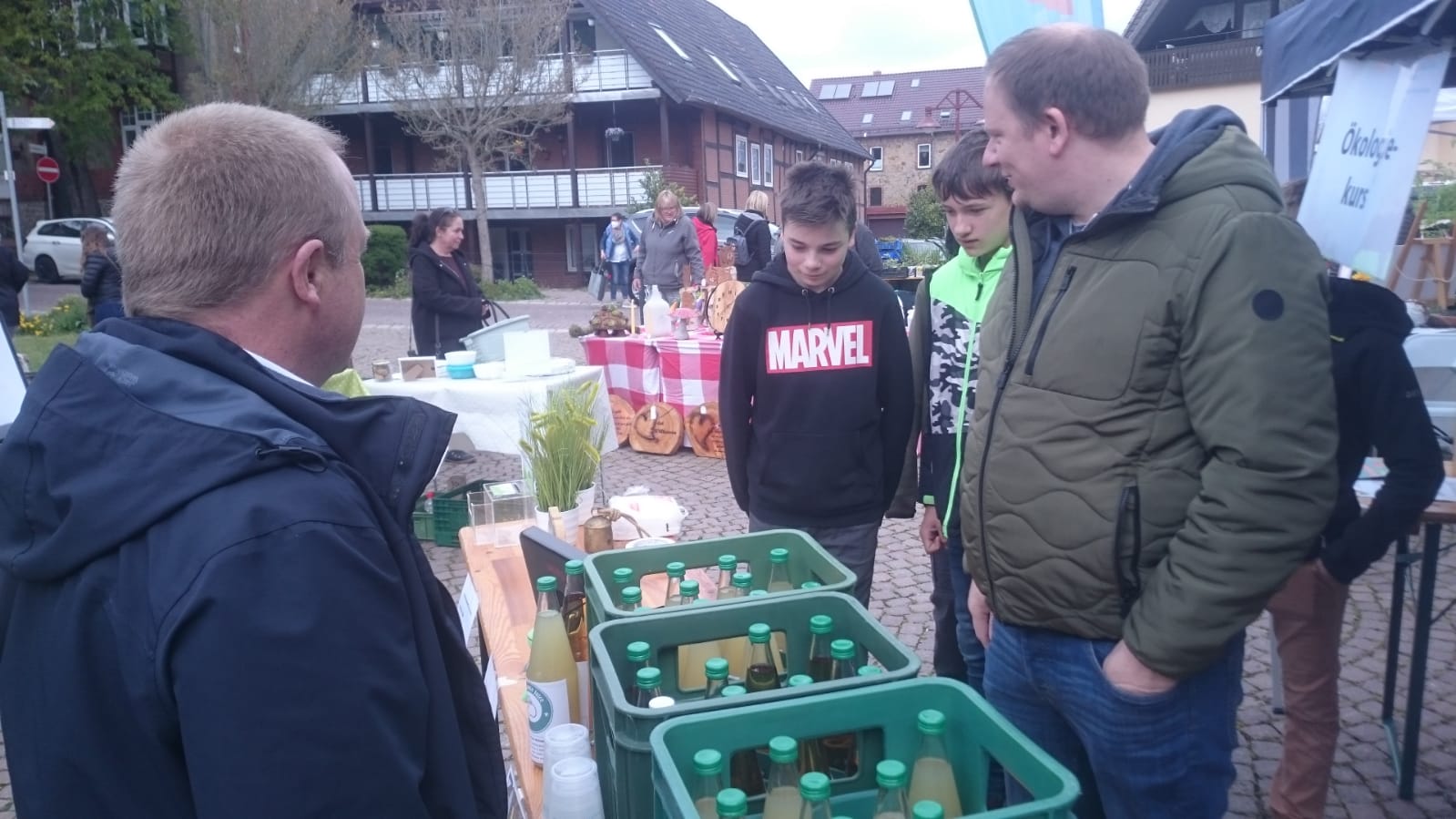 Auch in diesem Jahr beteiligte sich die Jacobischule an dem Flohmarkt. Herr Sasse mobilisierte seinen Ökokurs, die selbstgebaute Vogelhäuschen und Insektenhotels anboten. Herr Ruppert bot mit seinen Schüler*innen von der Schülerfirma "Saftladen Kalletal" den schuleigenen Apfelsaft an.